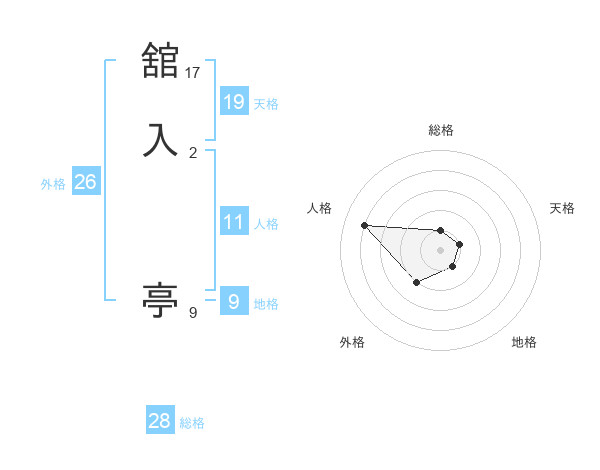 舘入 亭さんの総格は28画の1点!
