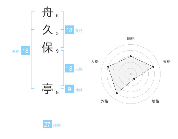 舟久保 亭さんの総格は27画の3点!
