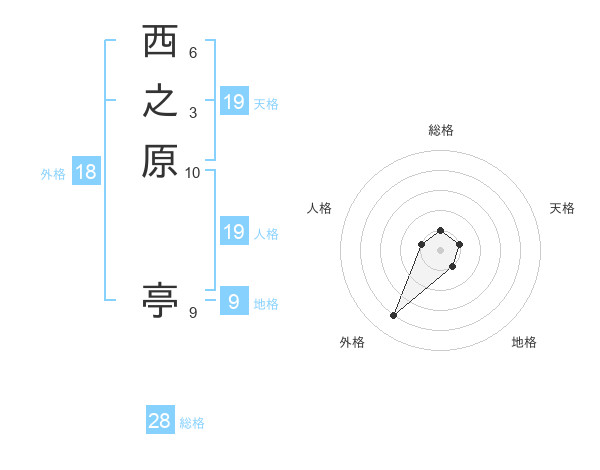 西之原 亭さんの総格は28画の1点!