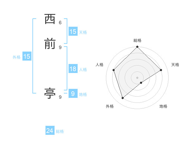 西前 亭さんの総格は24画の5点!