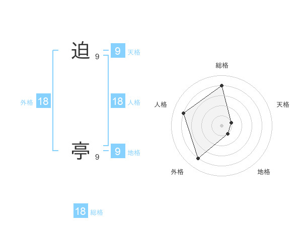 迫 亭さんの総格は18画の4点!