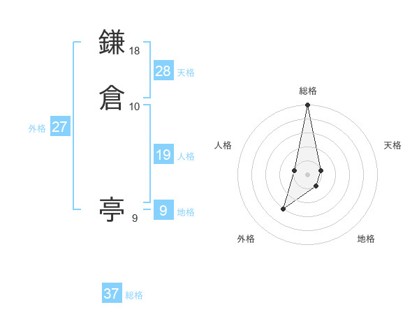 鎌倉 亭さんの総格は37画の5点!
