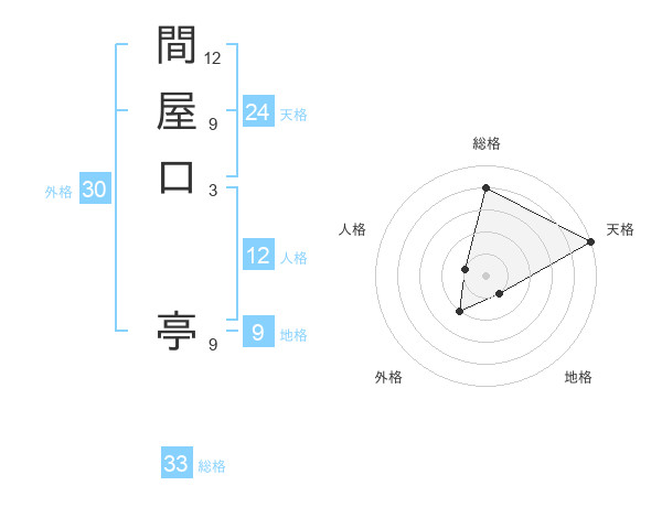 間屋口 亭さんを姓名の画数から五運を鑑定