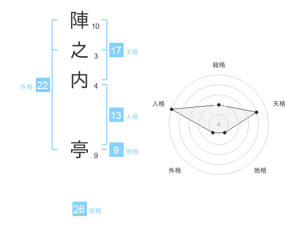 陣之内 亭さんの総格は26画の2点!