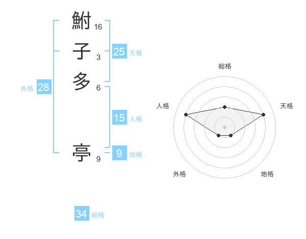 鮒子多 亭さんの総格は34画の2点!