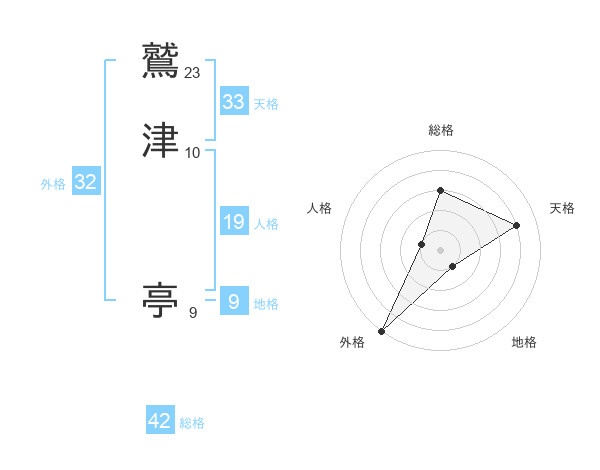 鷲津 亭さんを姓名の画数から五運を鑑定