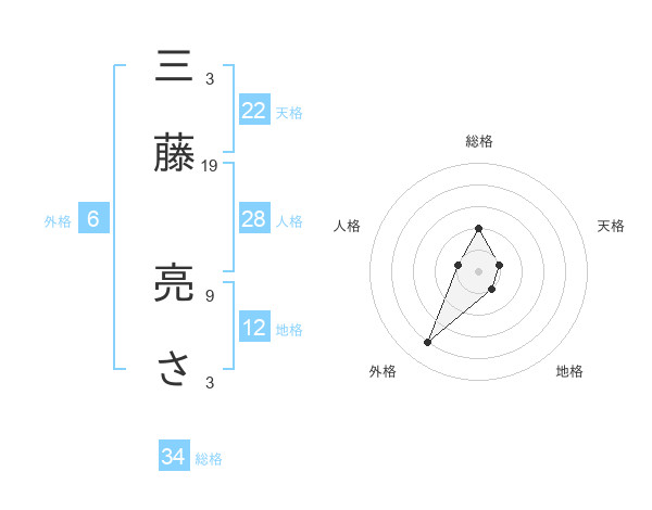 三藤 亮ささんを姓名の画数から五運を鑑定