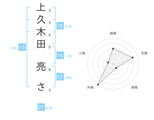 上久木田 亮ささんを姓名の画数から五運を鑑定
