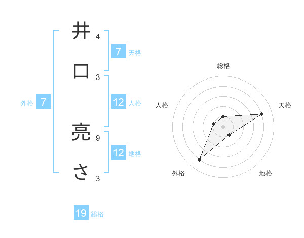 井口 亮ささんの天格は7画の4点!