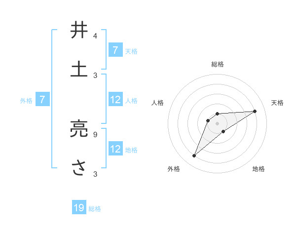 井土 亮ささんの天格は7画の4点!