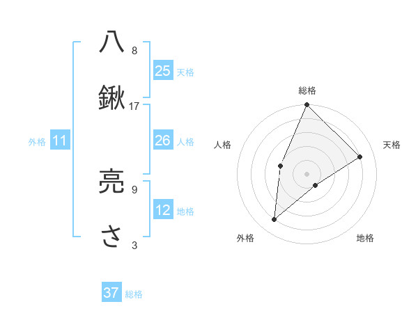 八鍬 亮ささんの総格は37画の5点!