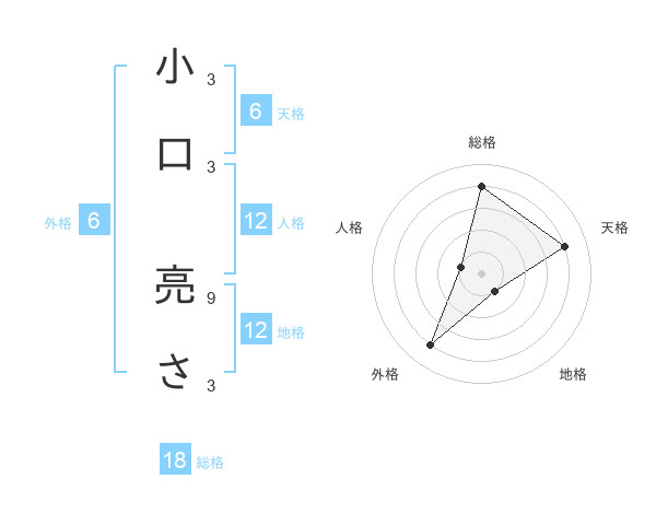 小口 亮ささんの総格は18画の4点!