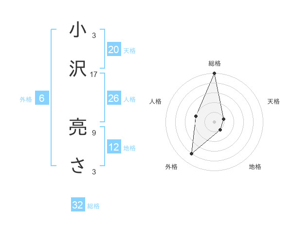 小沢 亮ささんの総格は32画の5点!