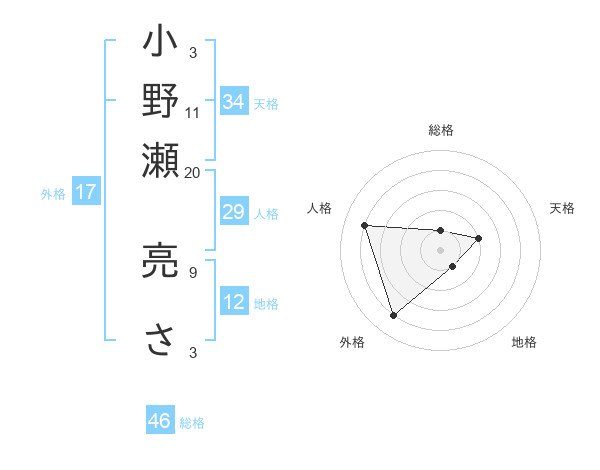 小野瀬 亮ささんを姓名の画数から五運を鑑定