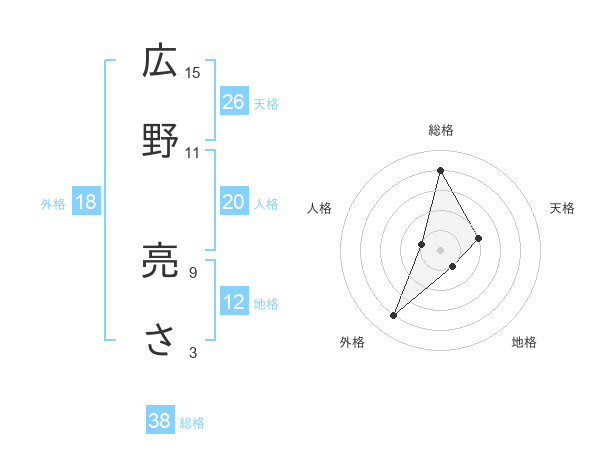 広野 亮ささんの総格は38画の4点!