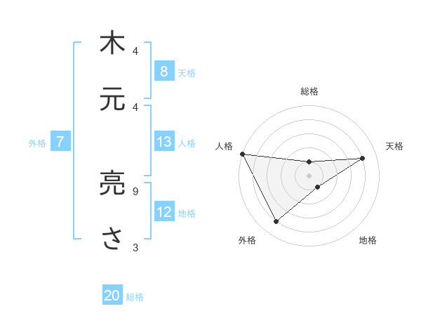 木元 亮ささんの総格は20画の1点!