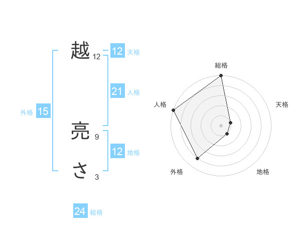 越 亮ささんの地格は12画の1点!