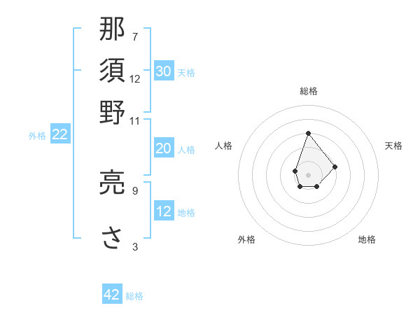 那須野 亮ささんを姓名の画数から五運を鑑定