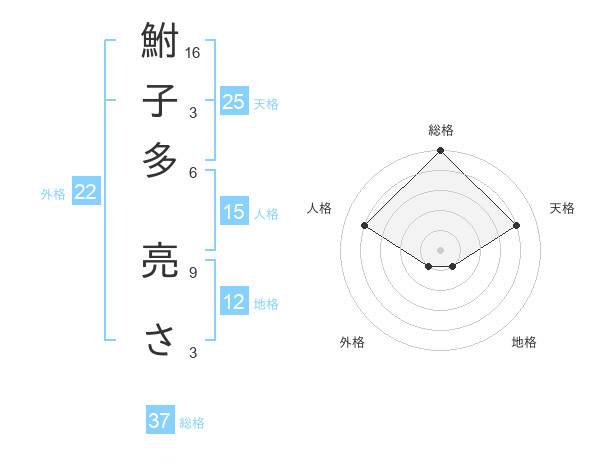 鮒子多 亮ささんを姓名の画数から五運を鑑定