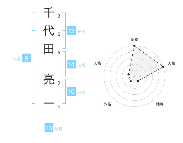 千代田 亮一さんの総格は23画の5点!