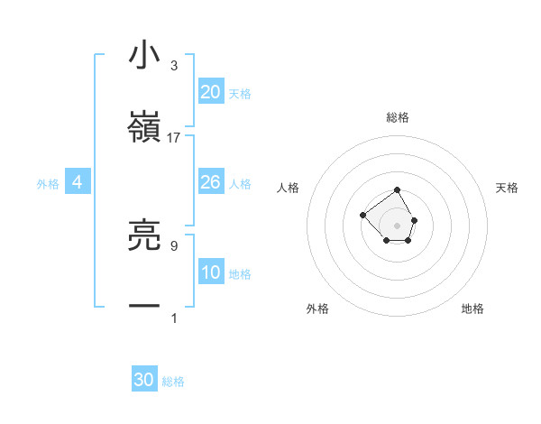 小嶺 亮一さんの総格は30画の2点!