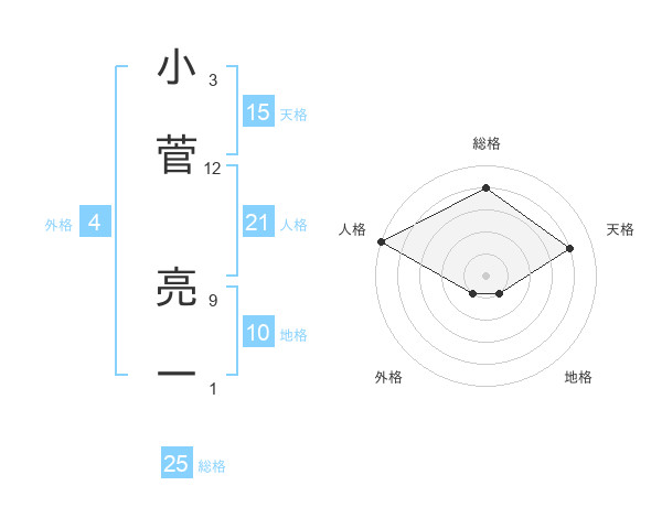 小菅 亮一さんの総格は25画の4点!
