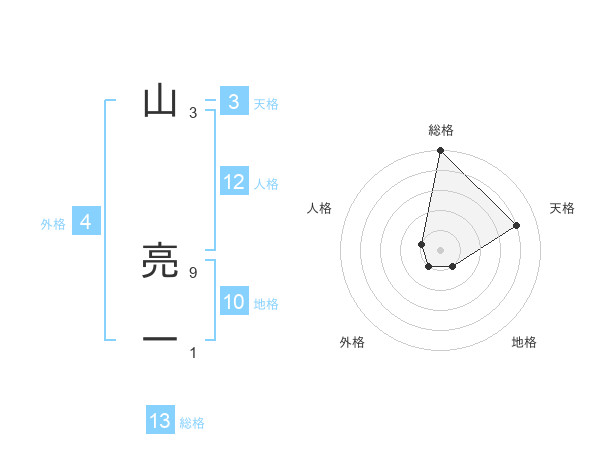 山 亮一さんの総格は13画の5点!