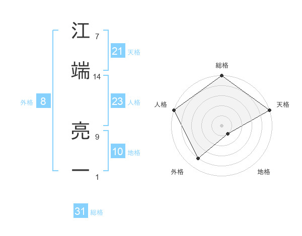 江端 亮一さんの総格は31画の5点!