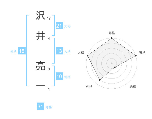沢井 亮一さんの総格は31画の5点!