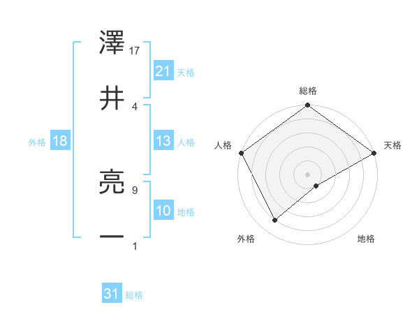 澤井 亮一さんの総格は31画の5点!
