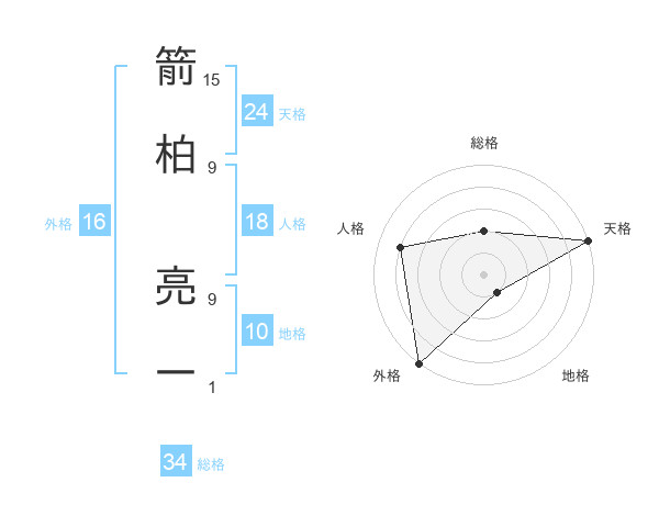 箭柏 亮一さんを姓名の画数から五運を鑑定