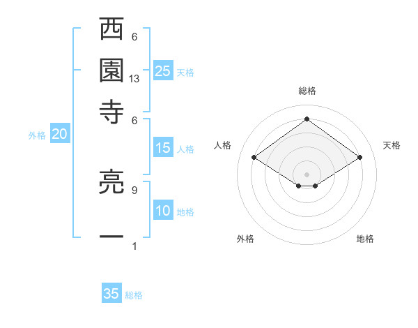 西園寺 亮一さんを姓名の画数から五運を鑑定