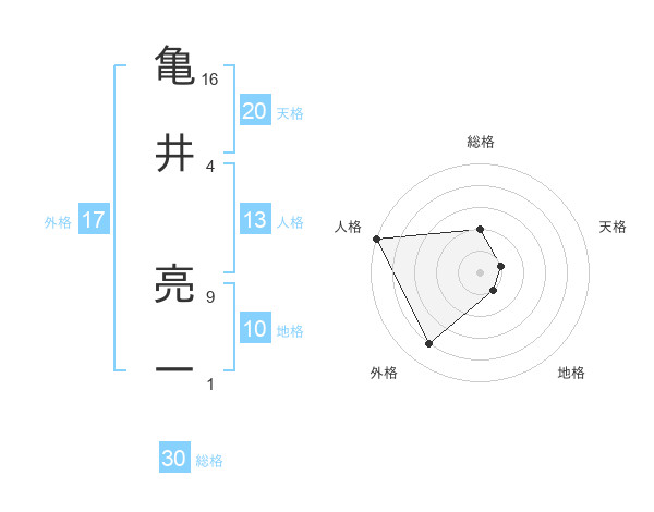 亀井 亮一さんを姓名の画数から五運を鑑定