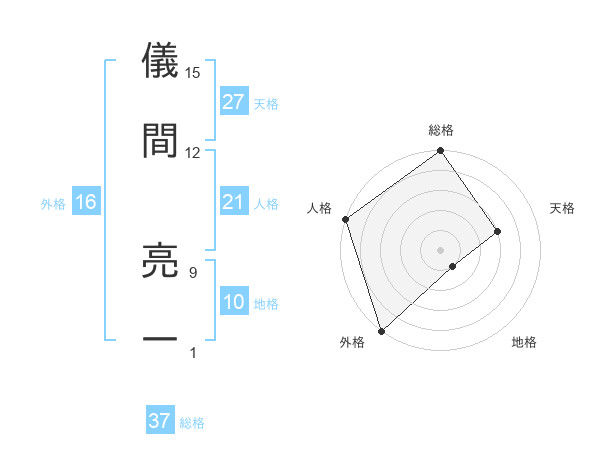 儀間 亮一さんの総格は37画の5点!