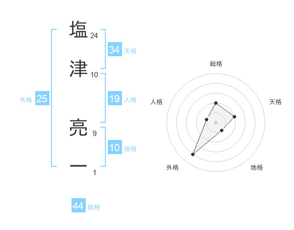 塩津 亮一さんを姓名の画数から五運を鑑定