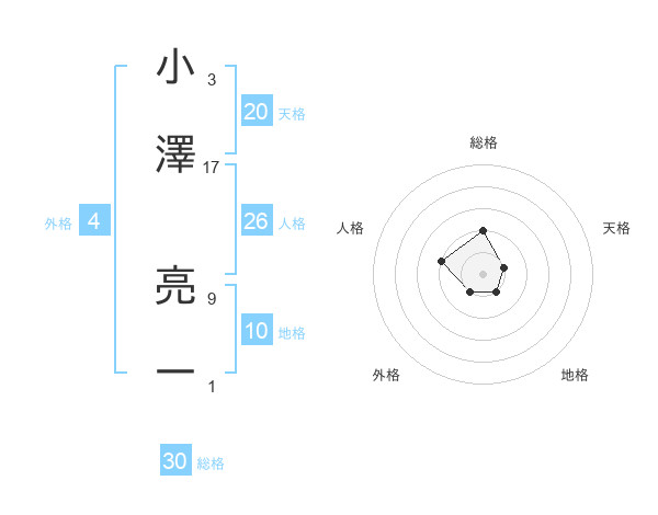 小澤 亮一さんの総格は30画の2点!