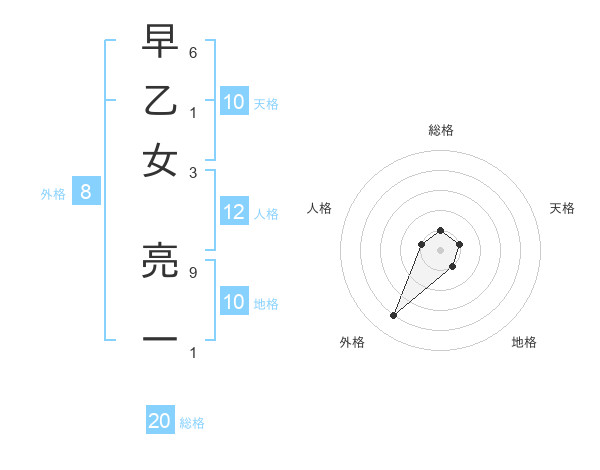 早乙女 亮一さんを姓名の画数から五運を鑑定