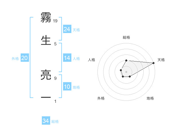 霧生 亮一さんを姓名の画数から五運を鑑定