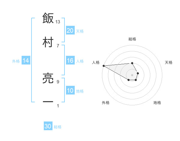 飯村 亮一さんを姓名の画数から五運を鑑定