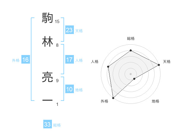 駒林 亮一さんの総格は33画の4点!