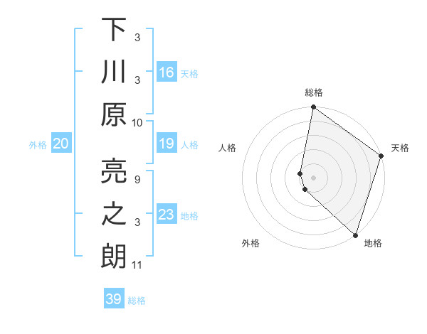 下川原 亮之朗さんを姓名の画数から五運を鑑定