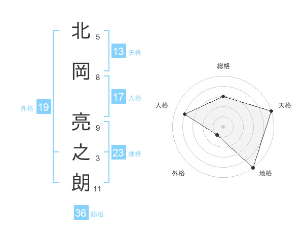 北岡 亮之朗さんを姓名の画数から五運を鑑定