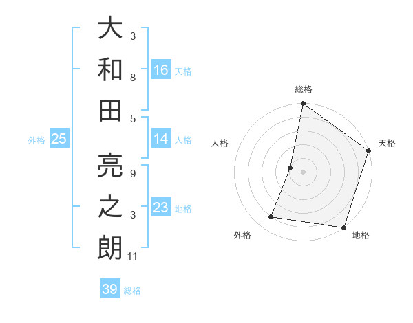 大和田 亮之朗さんを姓名の画数から五運を鑑定