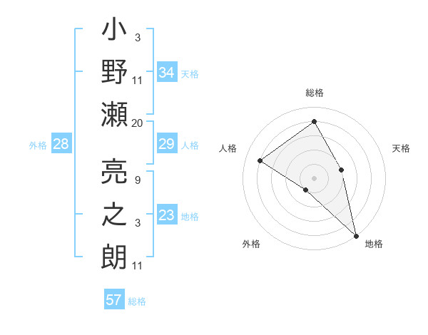 小野瀬 亮之朗さんを姓名の画数から五運を鑑定