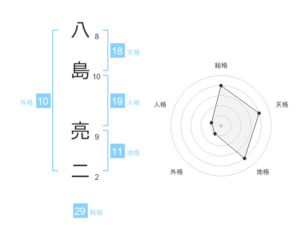 八島 亮二さんの総格は29画の4点!