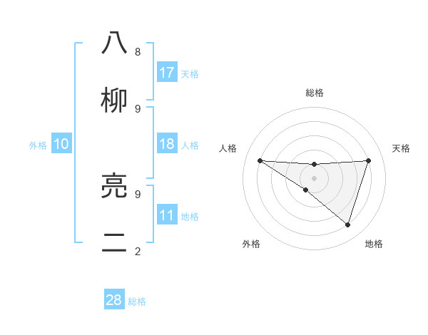 八柳 亮二さんを姓名の画数から五運を鑑定