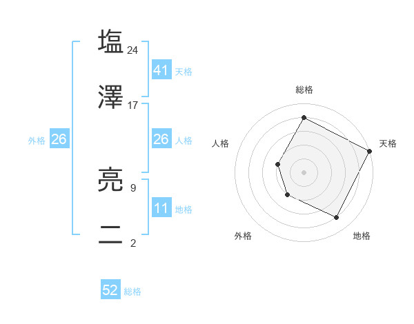 塩澤 亮二さんの総格は52画の4点!