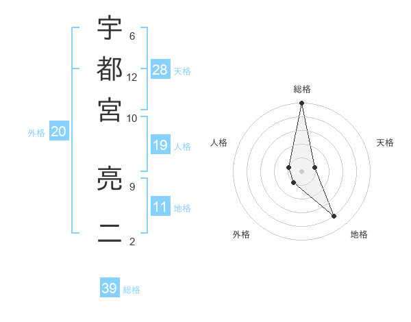 宇都宮 亮二さんを姓名の画数から五運を鑑定