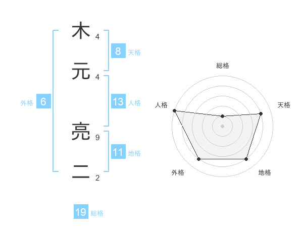 家系が持つ宿命的な運勢を表します。祖先から受け継いだ苗字ですので自分の力が及びません。家柄を象徴します。
