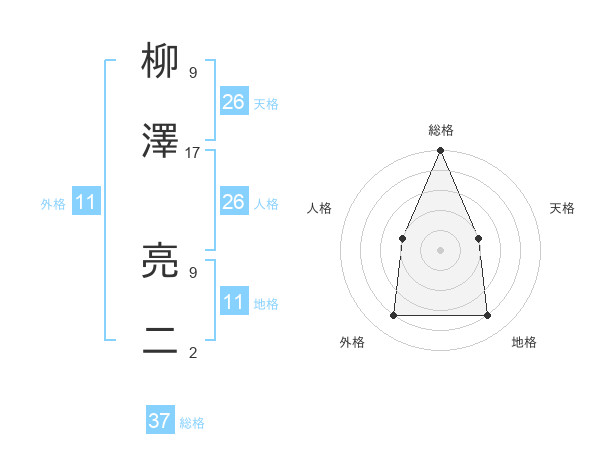 柳澤 亮二さんの総格は37画の5点!